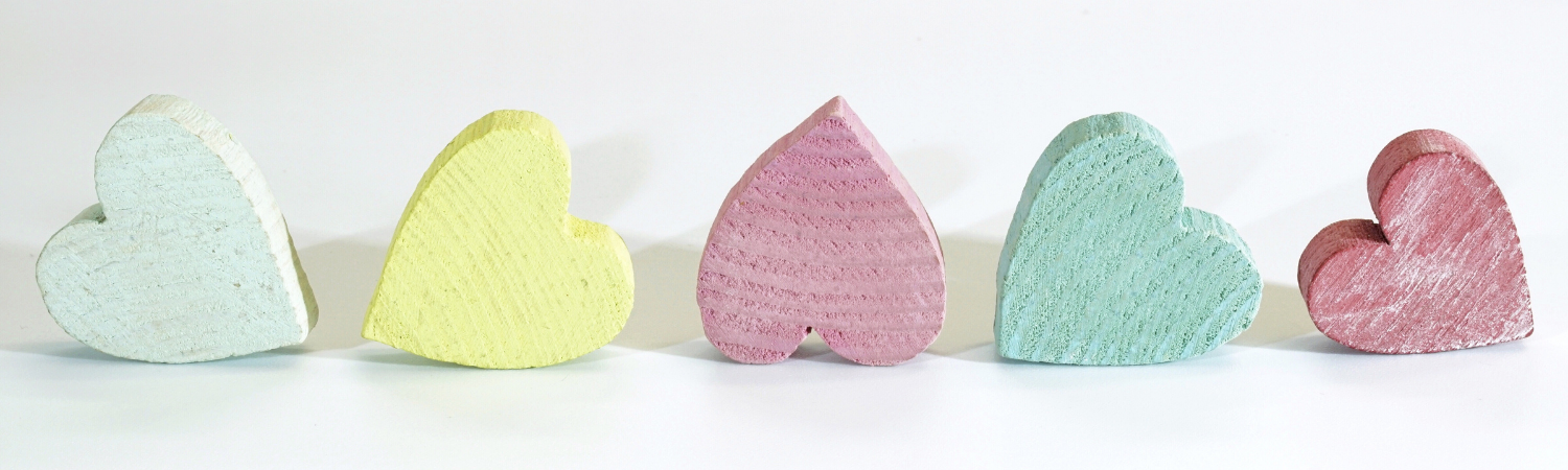 Colorful wooden hearts.
